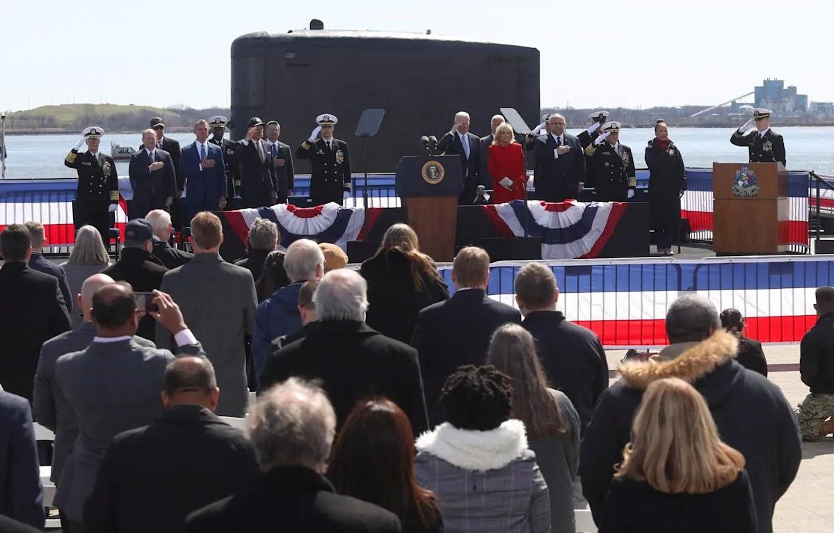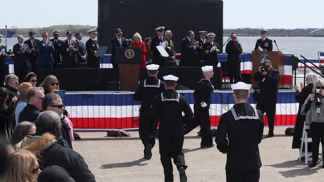 President Joe Biden and Jill Biden were guests. The first lady is the sponsor of the submarine, an honorary role in which she participates in the milestones of the vessel’s life. A sponsor’s spirit is meant to protect and guide the ship and its crew during its lifetime.