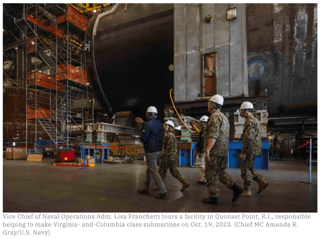 The Navy has been buying its attack subs at a rate of two per year since FY11, but industry has not kept up in recent years, delivering closer to an average of 1.2 boats annually. The service spent $2.3 billion from FY18 to FY23 to change that, hoping to not only get industry up to an on-time delivery rate of two per year, but then to a rate between 2.3 and 2.5 to support the AUKUS submarine partnership with Australia and the United Kingdom.