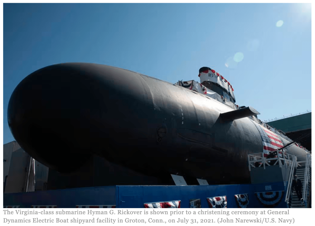 The service has bought Virginia-class attack submarines at a rate of two per year since 2011. It has also pitched this continuous and predictable construction pace as key to getting back to on-time deliveries and increasing industrial base output to support the AUKUS agreement between Australia, the U.K. and the U.S.