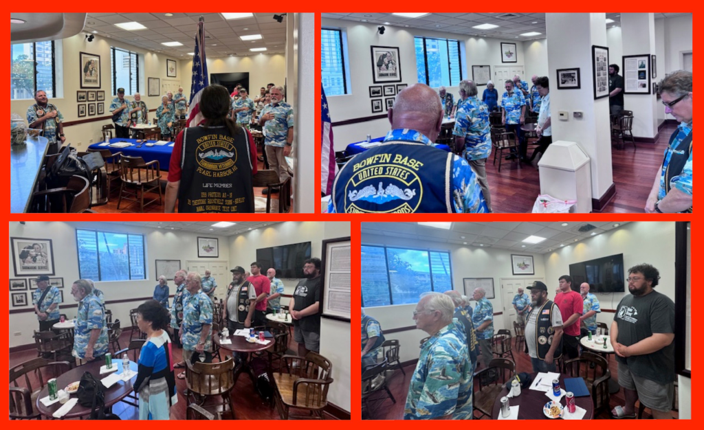 Bowfin Meeting – We conducted our July meeting at Clean Sweep Bar, Lockwood Hall. The following members attended – Base Commander Paul Jurcsak, Vice Commander Tim Sparks, Secretary Brett Kulbis, COB Gary Johnson, and members George Barlett, George Barlett, Rodney Boucher, Karl Dye, Nelson Greer, Ace Parker, Crichton Roberts, Pat Suenaga, and Joe Winzenried.