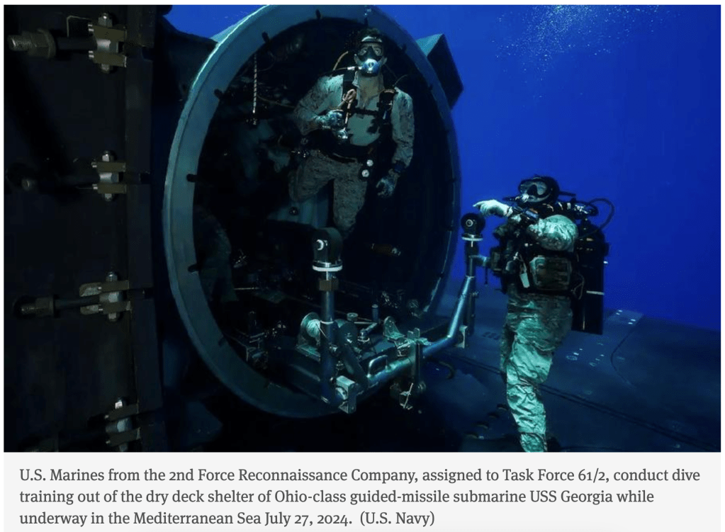 The guided-missile submarine USS Georgia finished a series of training events with Force Reconnaissance Marines from the 2nd Reconnaissance Battalion and special operations forces on Monday, U.S. Naval Forces Europe-Africa/U.S. 6th Fleet said in a statement posted to its website on Friday.