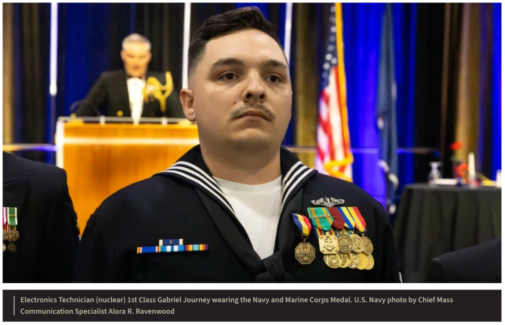 For his heroism, Petty Officer 1st Class Gabriel Journey was awarded the Navy and Marine Corps Medal on April 11.