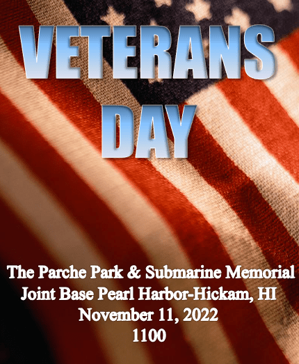 On November 11, 2022 at 11:00am Bowfin Pearl Harbor Base SUBVETS conducted our annual Veterans Day Commemoration ceremony at the JBPHH Submarine Memorial.