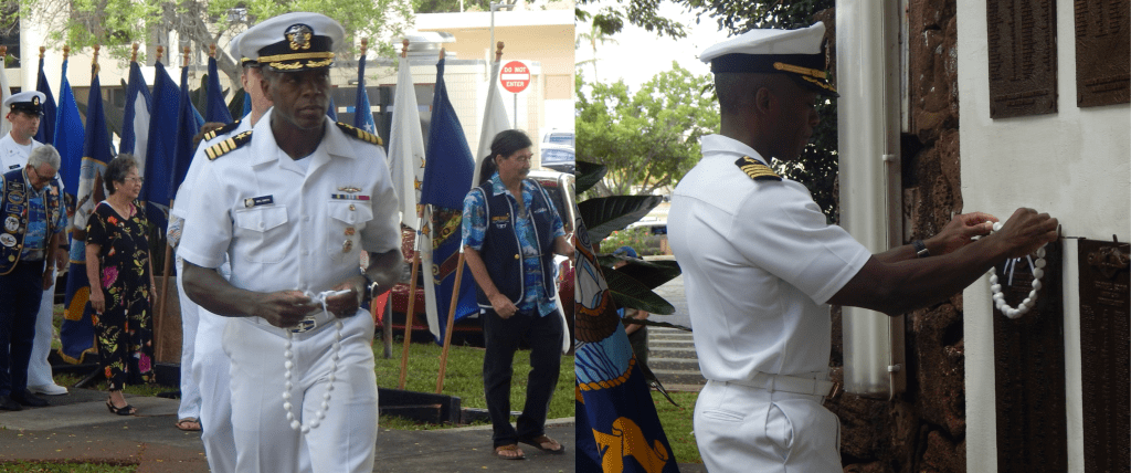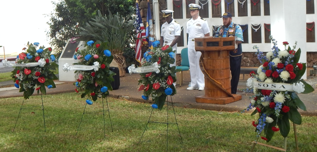 This was followed by Special Lei Presentation by Dolores Brown for the USS Growler (SS 215) the “State Submarine of Hawaii,” and Wreath presentations by Bowfin Base, U.S. Submarine Veterans, Inc., Pacific Fleet Submarine Memorial Association, U.S. Submarine League, Aloha Chapter and Pearl Harbor Submarine Officers’ Spouses Association.