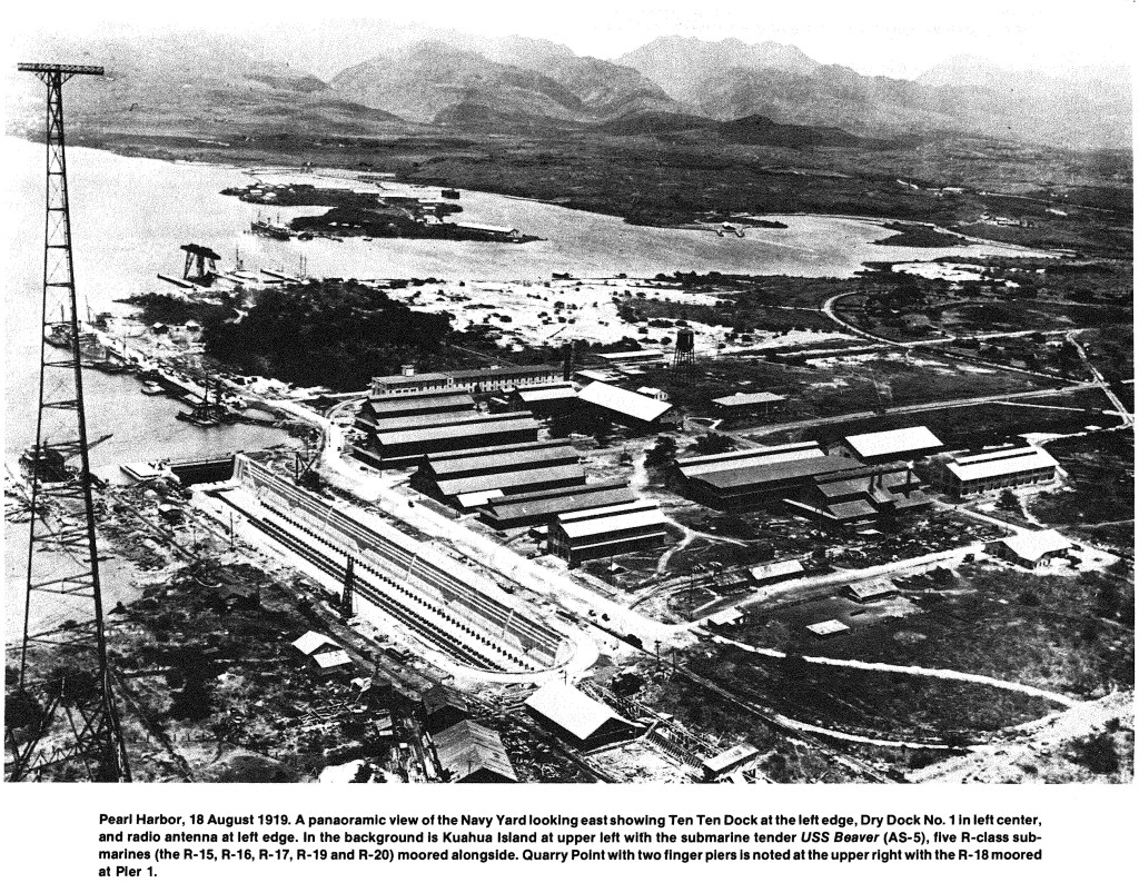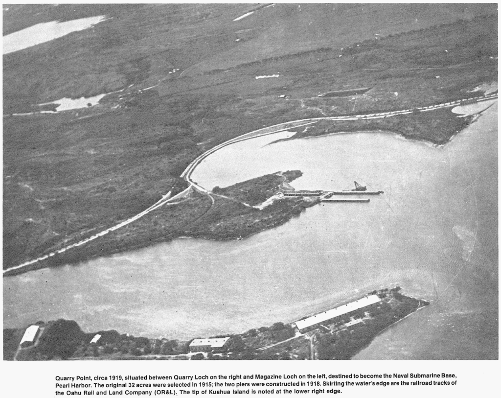 In March 1917, funds were allocated for the construction of two creosoted-timber piers at Quarry Point. This marked the beginning of submarine development at Pearl Harbor.