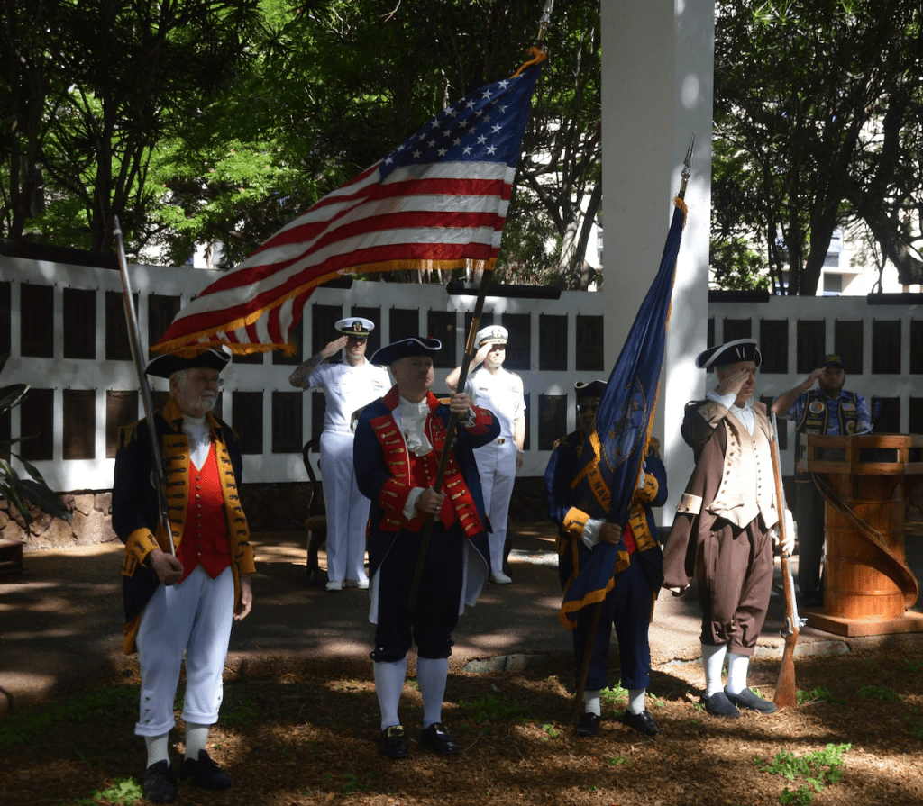 Base Commander Paul Jurcsak opened the commemoration. Followed by the Parading of All 50 State Flags by the Radford High School JROTC and Boy Scout Troops 97 & 797G, and the posting of colors by National Sojourners Inc. members. Submarine Readiness Squadron 33 Chaplain CDR John B. Sears, CHC, USN performed the invocation. Everyone in attendance joined together in singing the National Anthem.