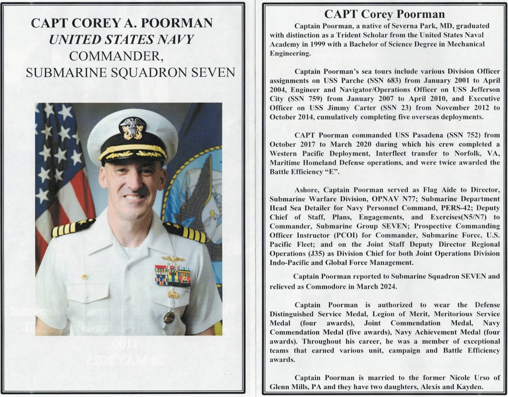 Our distinguished guest Captain Jeffrey Fassbender, Commodore Submarine Squadron 7, provided the keynote address.