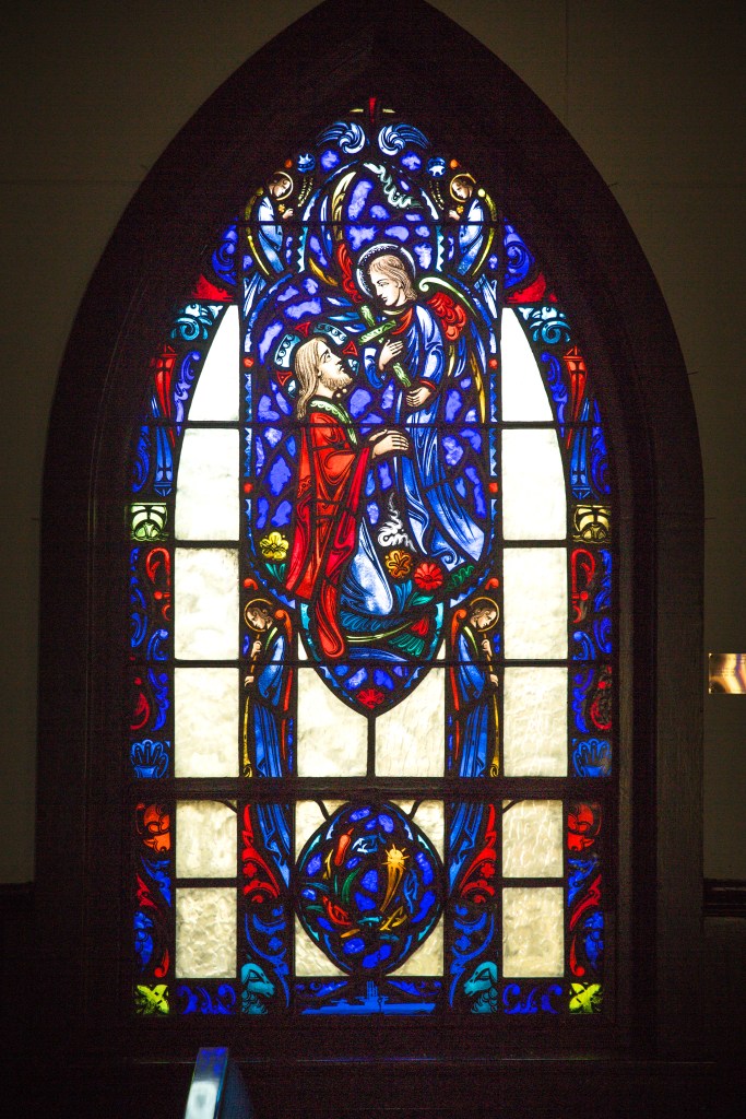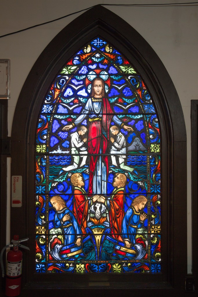 The stained glass windows we plan to dedicate today were actually donated by the president of the Electric Boat Company, Groton, Connecticut in 1959. Interestingly, these stained glass windows were fashioned from templates that Chaplain Reilly provided 14 years earlier.